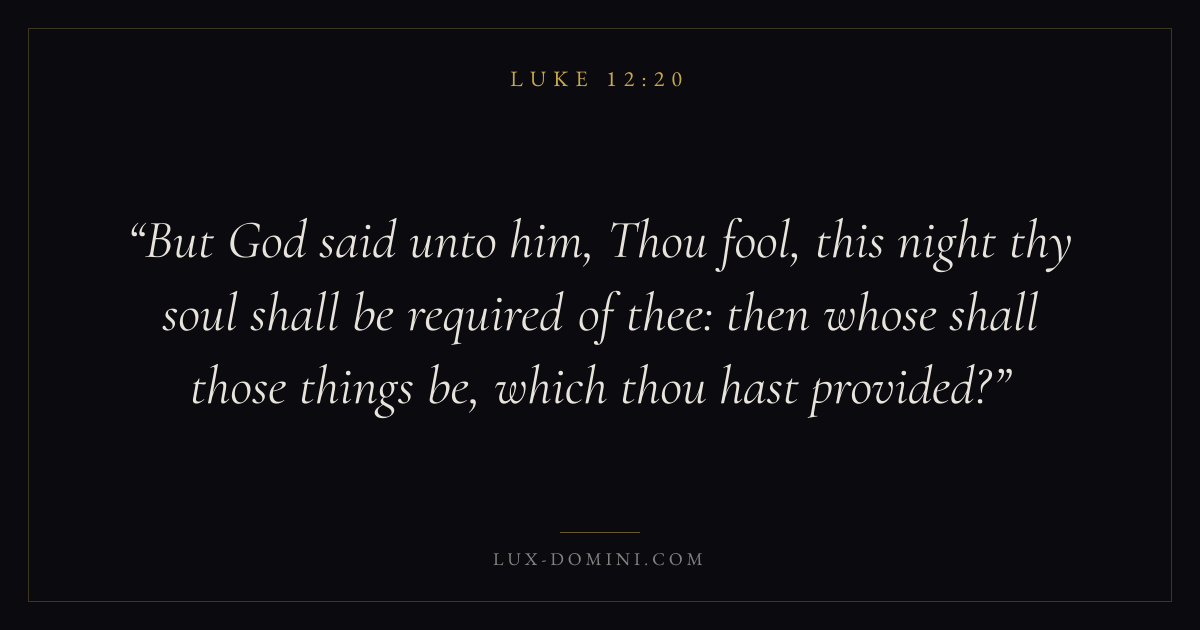But God said unto him, Thou fool, this night thy soul shall be required of thee: then whose shall those things be, which thou hast provided?