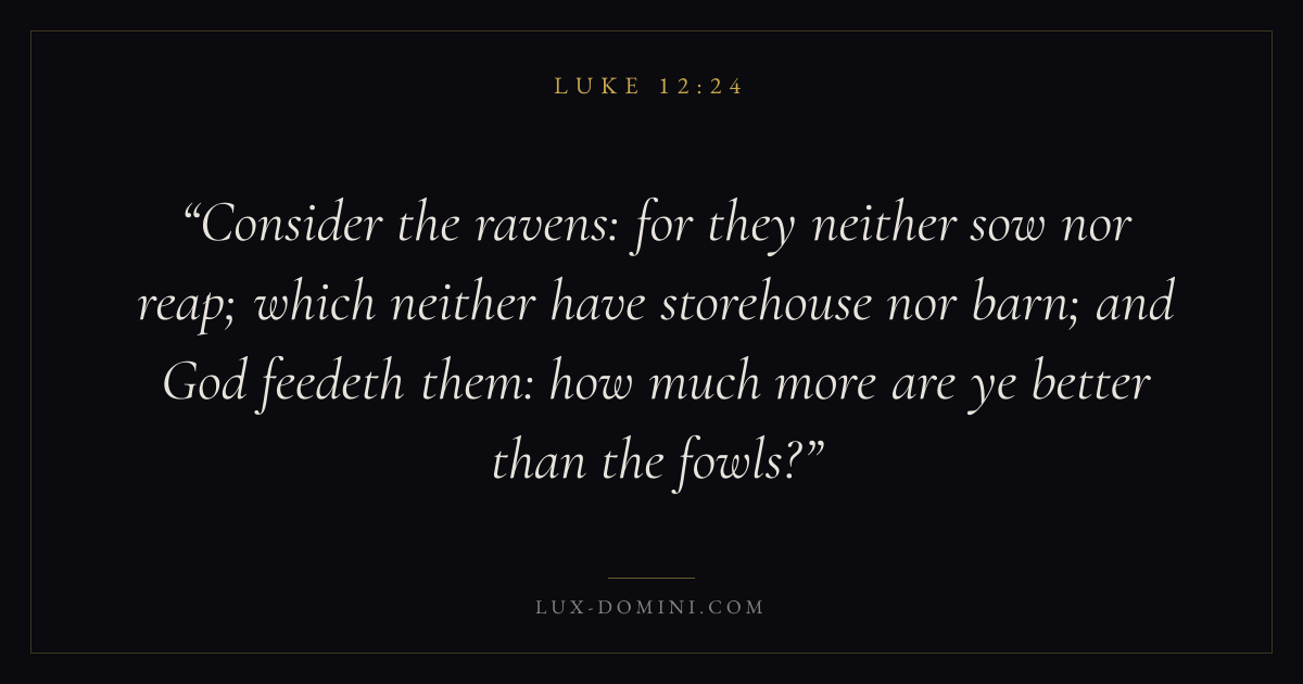 Consider the ravens: for they neither sow nor reap; which neither have storehouse nor barn; and God feedeth them: how much more are ye better than the fowls?