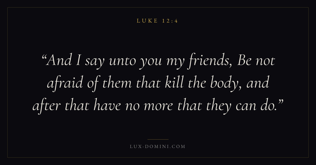 And I say unto you my friends, Be not afraid of them that kill the body, and after that have no more that they can do.