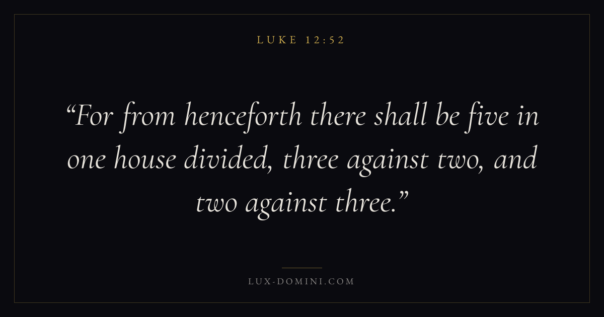 For from henceforth there shall be five in one house divided, three against two, and two against three.