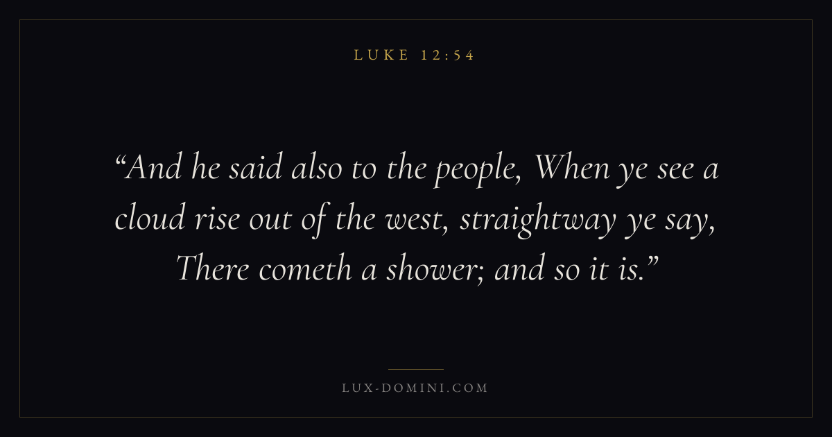 And he said also to the people, When ye see a cloud rise out of the west, straightway ye say, There cometh a shower; and so it is.