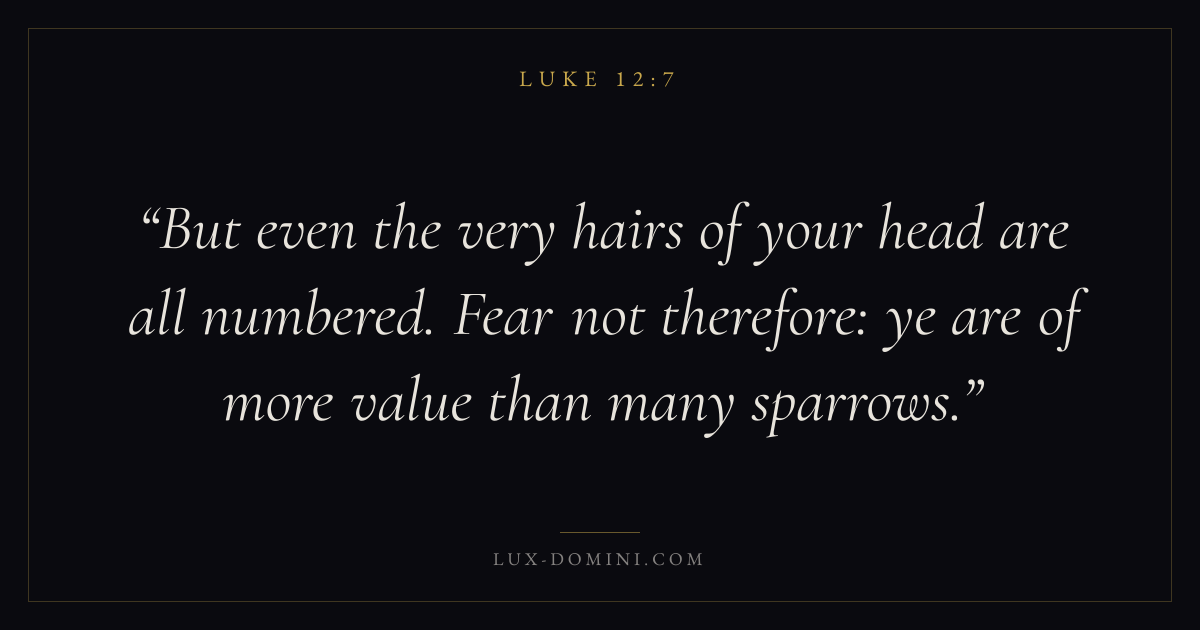 But even the very hairs of your head are all numbered. Fear not therefore: ye are of more value than many sparrows.