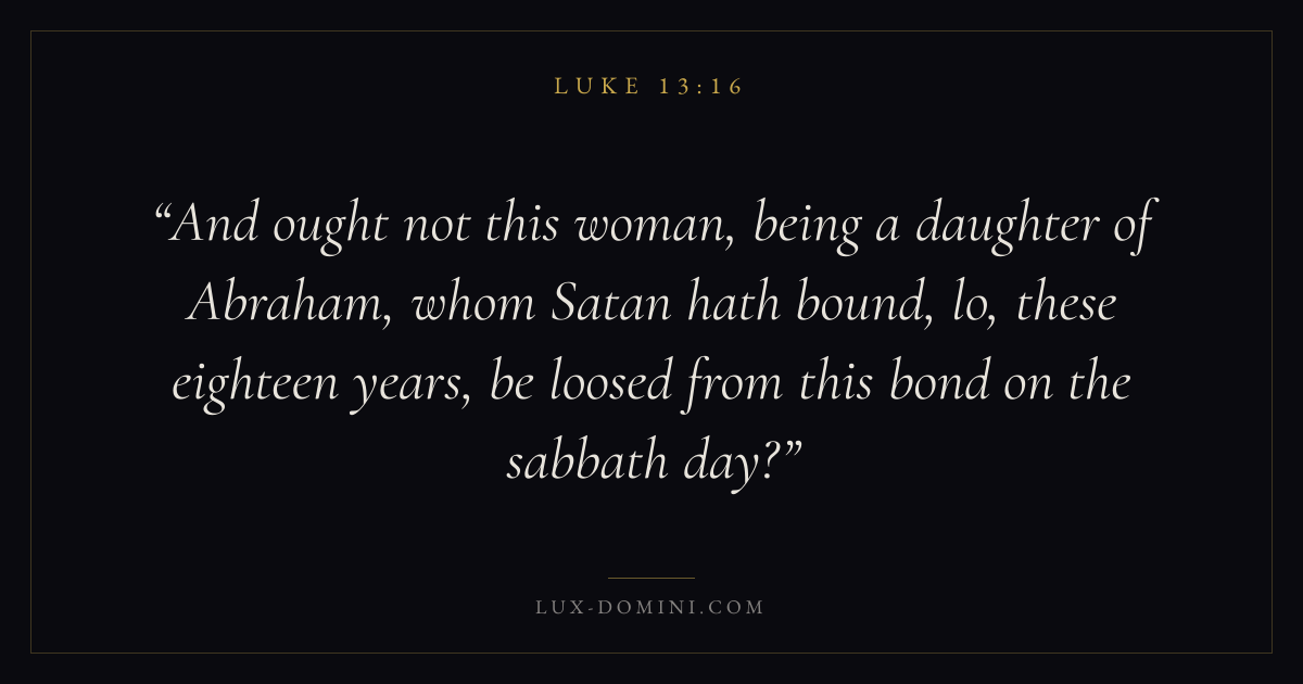 And ought not this woman, being a daughter of Abraham, whom Satan hath bound, lo, these eighteen years, be loosed from this bond on the sabbath day?
