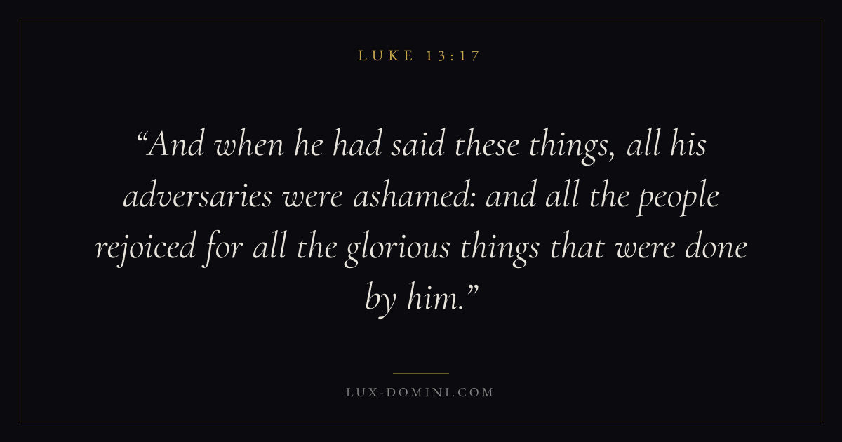 And when he had said these things, all his adversaries were ashamed: and all the people rejoiced for all the glorious things that were done by him.