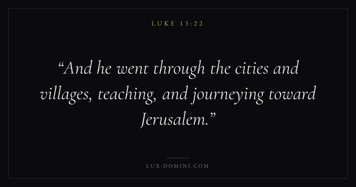 And he went through the cities and villages, teaching, and journeying toward Jerusalem.