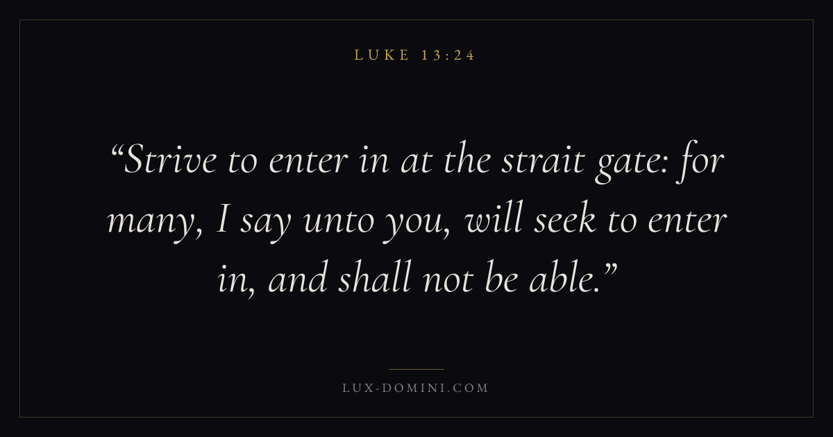 Strive to enter in at the strait gate: for many, I say unto you, will seek to enter in, and shall not be able.