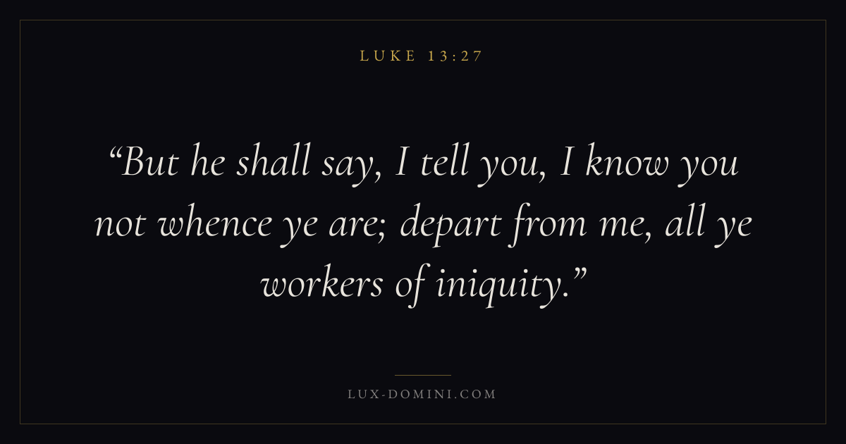 But he shall say, I tell you, I know you not whence ye are; depart from me, all ye workers of iniquity.