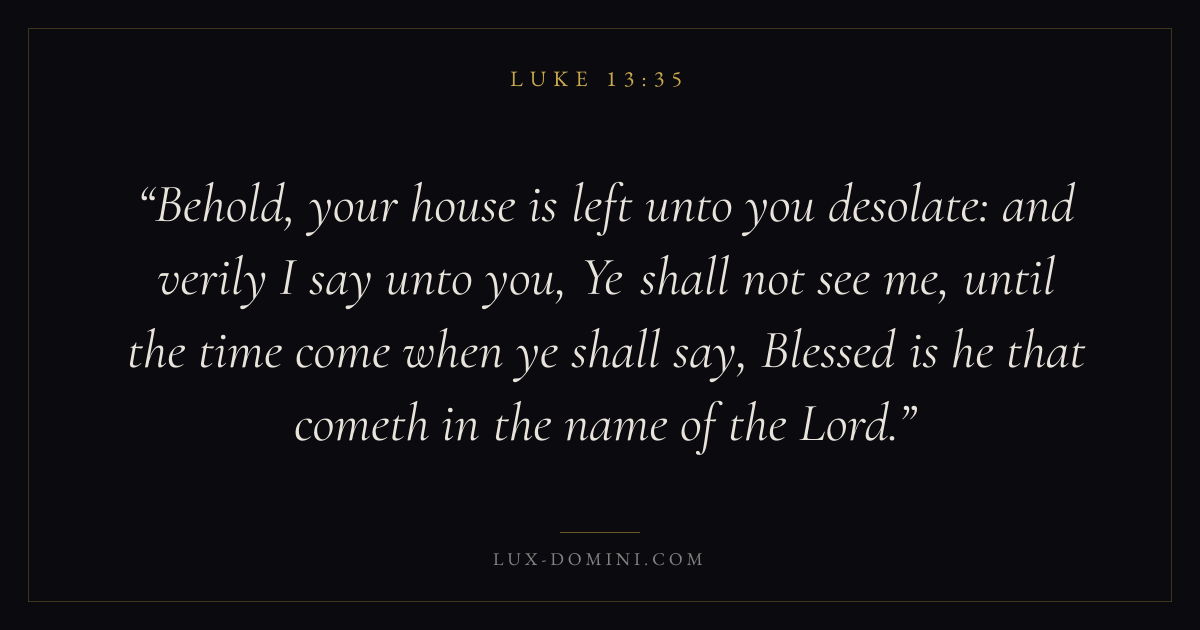 Behold, your house is left unto you desolate: and verily I say unto you, Ye shall not see me, until the time come when ye shall say, Blessed is he that cometh in the name of the Lord.