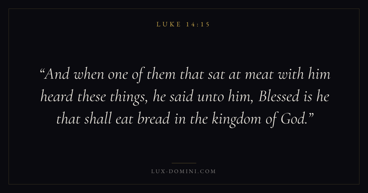 And when one of them that sat at meat with him heard these things, he said unto him, Blessed is he that shall eat bread in the kingdom of God.