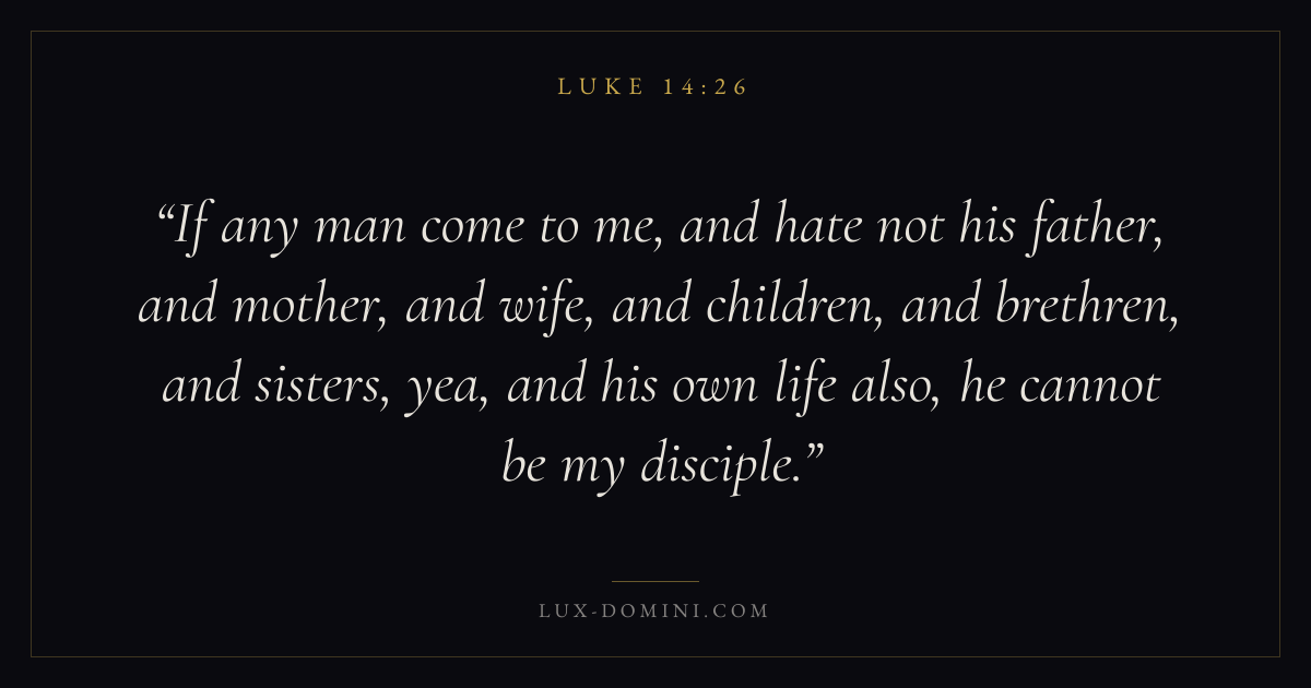 If any man come to me, and hate not his father, and mother, and wife, and children, and brethren, and sisters, yea, and his own life also, he cannot be my disciple.