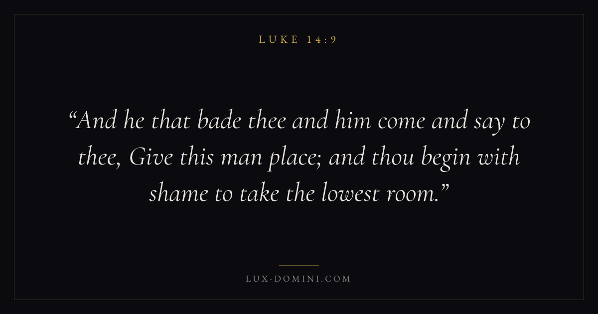 And he that bade thee and him come and say to thee, Give this man place; and thou begin with shame to take the lowest room.