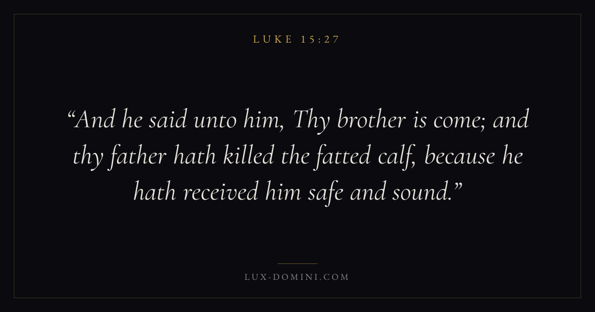 And he said unto him, Thy brother is come; and thy father hath killed the fatted calf, because he hath received him safe and sound.