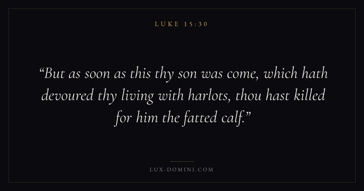 But as soon as this thy son was come, which hath devoured thy living with harlots, thou hast killed for him the fatted calf.