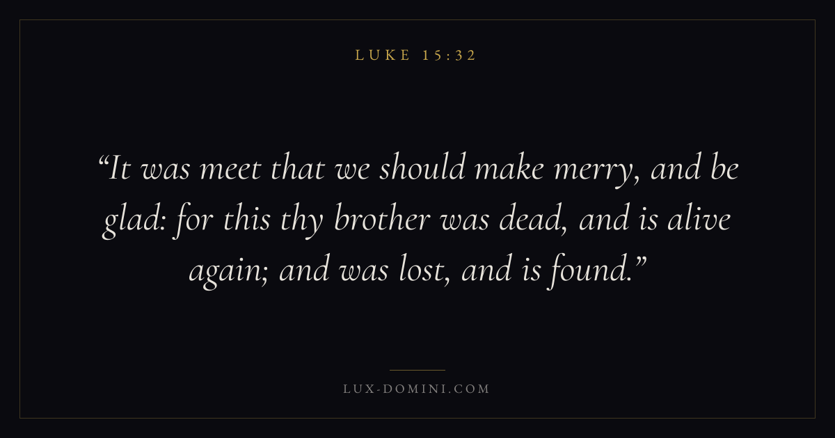 It was meet that we should make merry, and be glad: for this thy brother was dead, and is alive again; and was lost, and is found.