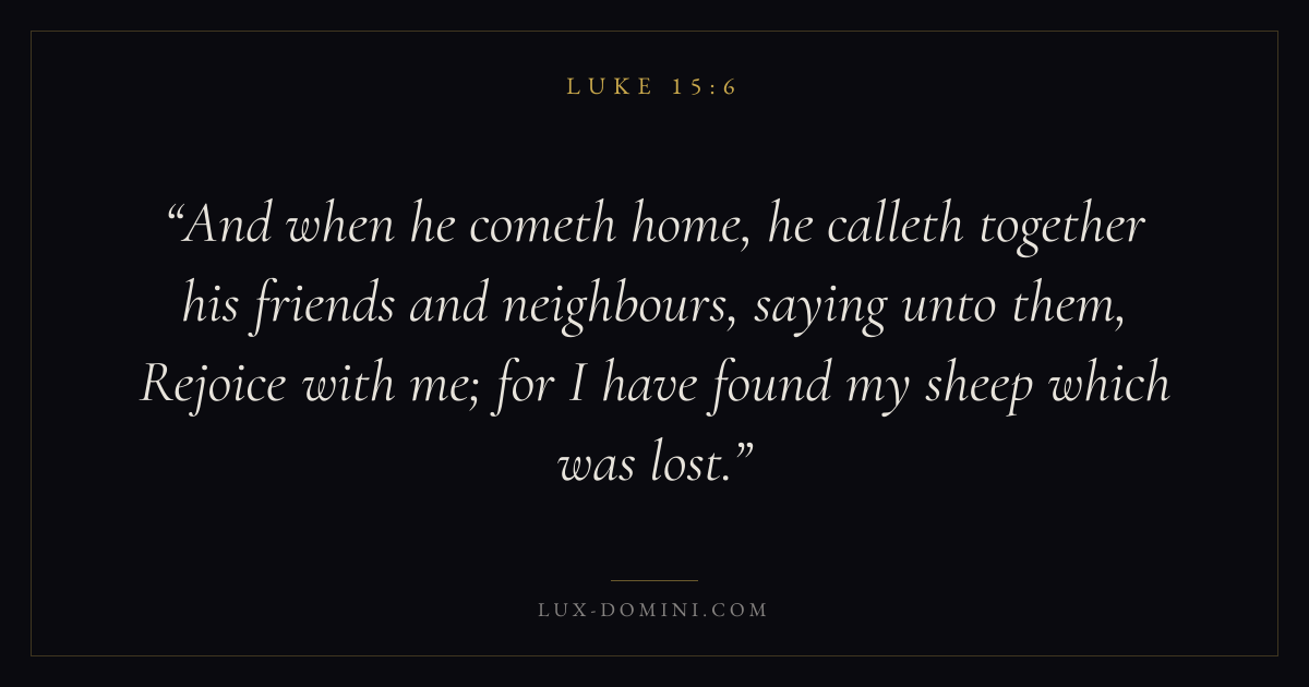 And when he cometh home, he calleth together his friends and neighbours, saying unto them, Rejoice with me; for I have found my sheep which was lost.