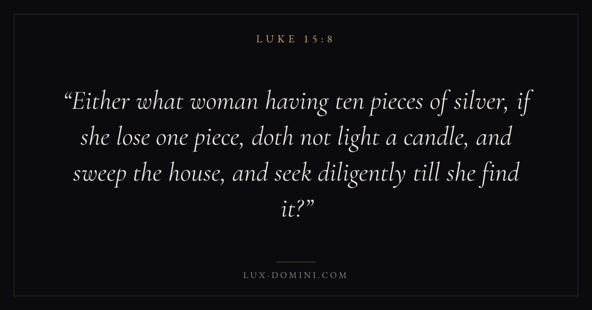 Either what woman having ten pieces of silver, if she lose one piece, doth not light a candle, and sweep the house, and seek diligently till she find it?