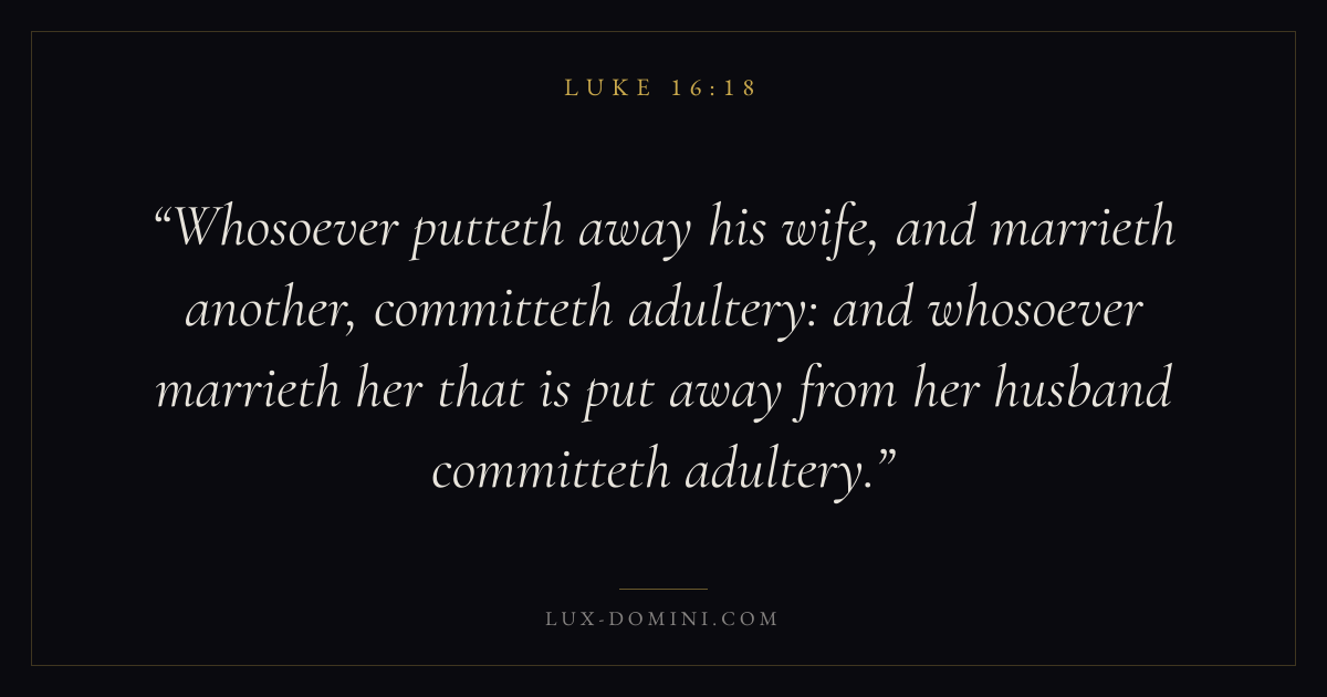 Whosoever putteth away his wife, and marrieth another, committeth adultery: and whosoever marrieth her that is put away from her husband committeth adultery.