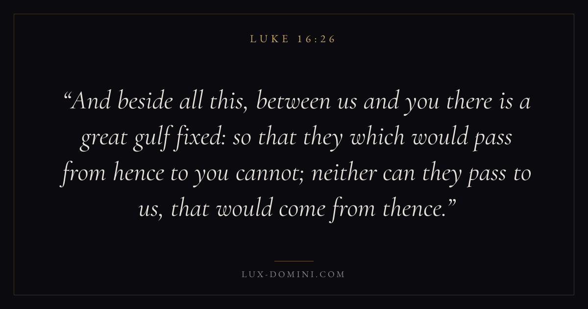 And beside all this, between us and you there is a great gulf fixed: so that they which would pass from hence to you cannot; neither can they pass to us, that would come from thence.