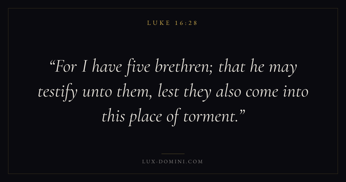 For I have five brethren; that he may testify unto them, lest they also come into this place of torment.