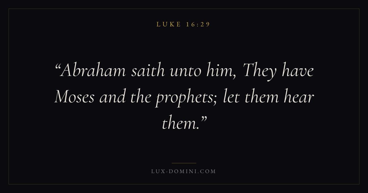 Abraham saith unto him, They have Moses and the prophets; let them hear them.