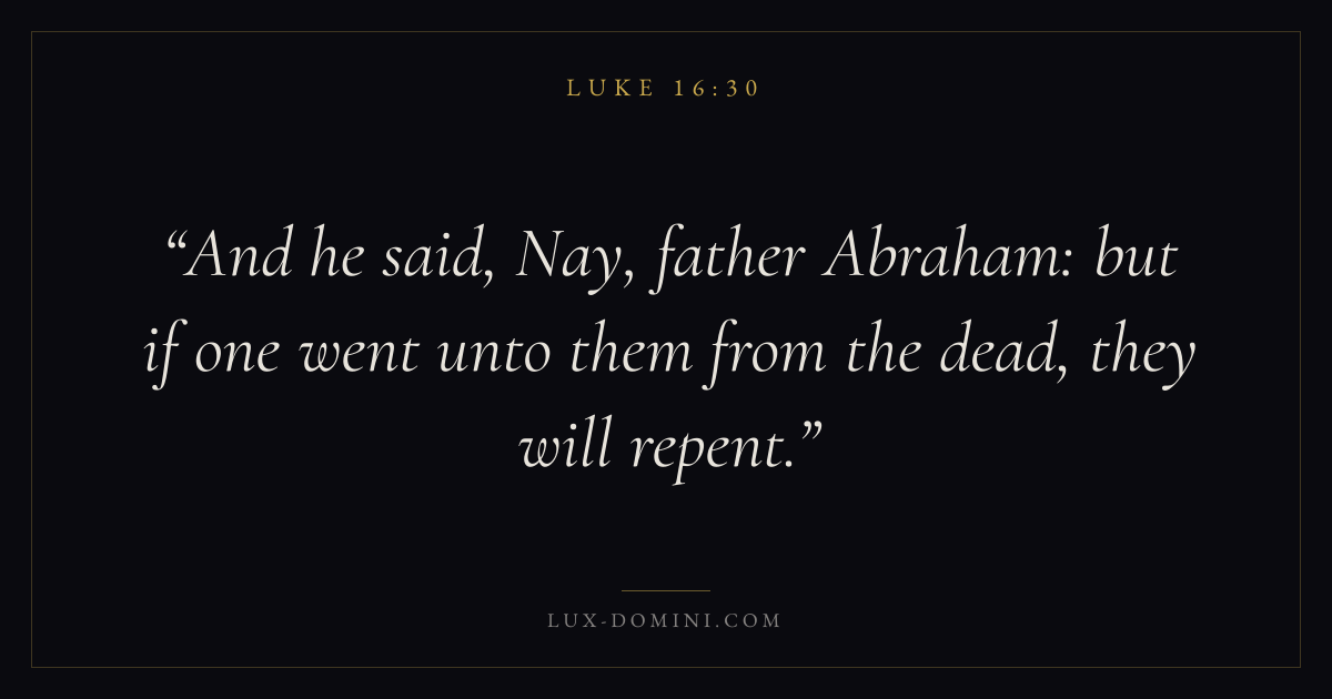 And he said, Nay, father Abraham: but if one went unto them from the dead, they will repent.
