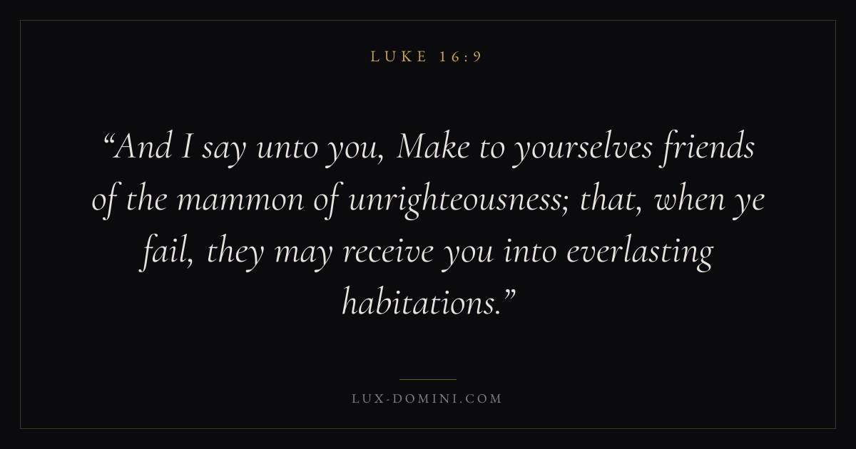 And I say unto you, Make to yourselves friends of the mammon of unrighteousness; that, when ye fail, they may receive you into everlasting habitations.