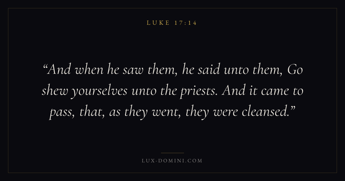 And when he saw them, he said unto them, Go shew yourselves unto the priests. And it came to pass, that, as they went, they were cleansed.