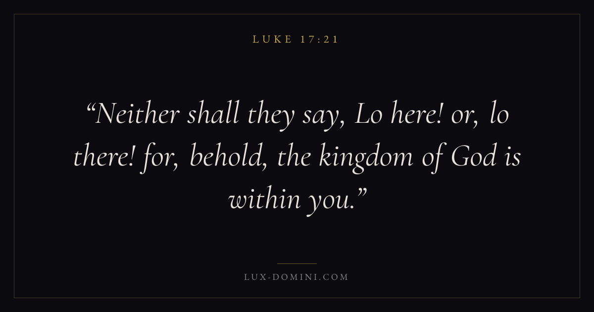 Neither shall they say, Lo here! or, lo there! for, behold, the kingdom of God is within you.