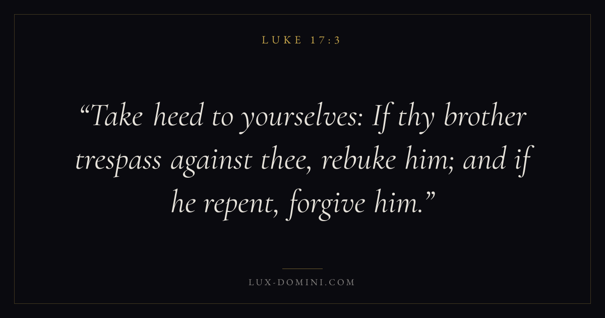 Take heed to yourselves: If thy brother trespass against thee, rebuke him; and if he repent, forgive him.