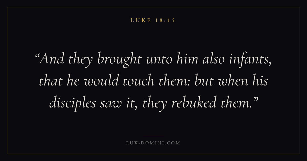 And they brought unto him also infants, that he would touch them: but when his disciples saw it, they rebuked them.