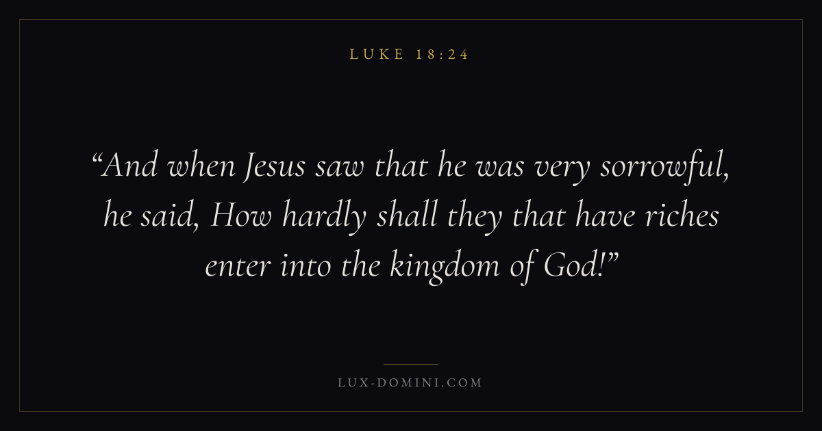 And when Jesus saw that he was very sorrowful, he said, How hardly shall they that have riches enter into the kingdom of God!