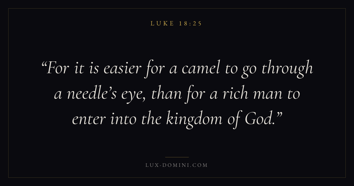 For it is easier for a camel to go through a needle’s eye, than for a rich man to enter into the kingdom of God.