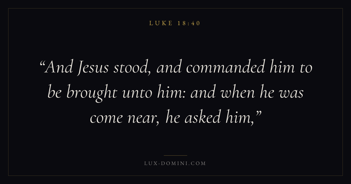 And Jesus stood, and commanded him to be brought unto him: and when he was come near, he asked him,