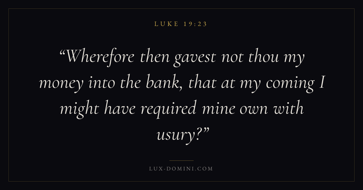 Wherefore then gavest not thou my money into the bank, that at my coming I might have required mine own with usury?