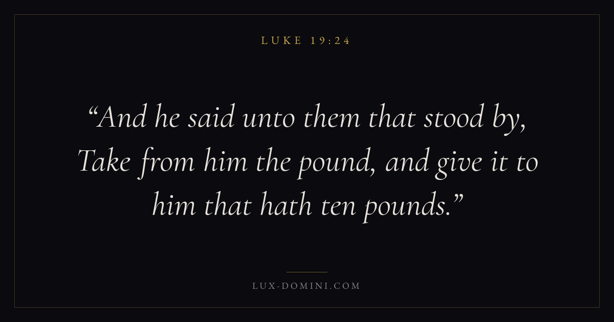 And he said unto them that stood by, Take from him the pound, and give it to him that hath ten pounds.