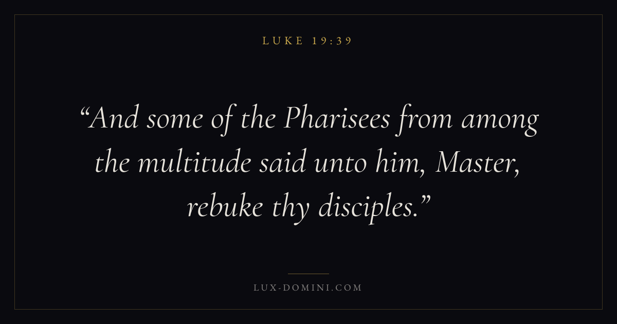 And some of the Pharisees from among the multitude said unto him, Master, rebuke thy disciples.