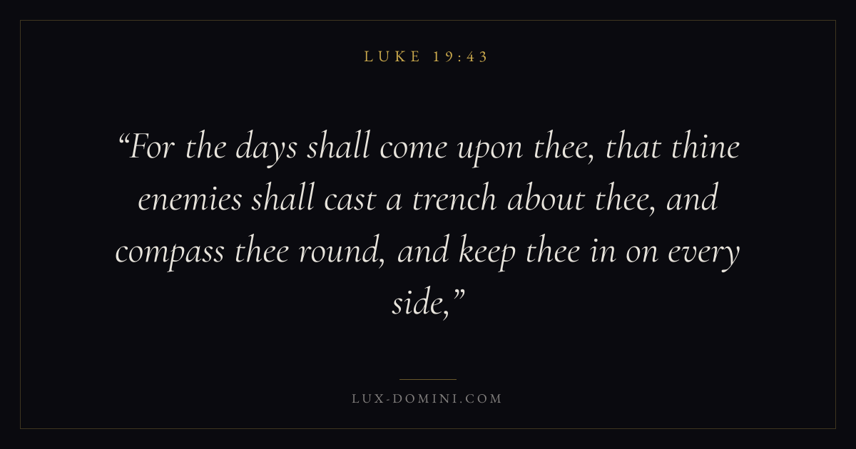 For the days shall come upon thee, that thine enemies shall cast a trench about thee, and compass thee round, and keep thee in on every side,