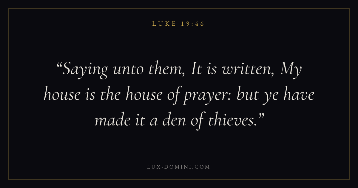 Saying unto them, It is written, My house is the house of prayer: but ye have made it a den of thieves.