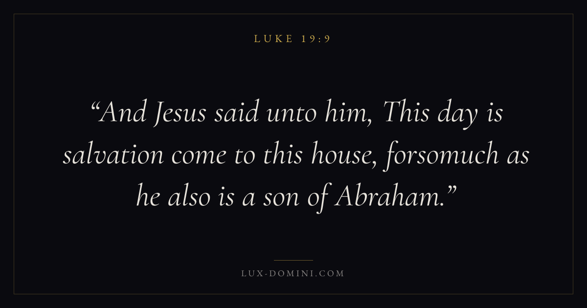 And Jesus said unto him, This day is salvation come to this house, forsomuch as he also is a son of Abraham.