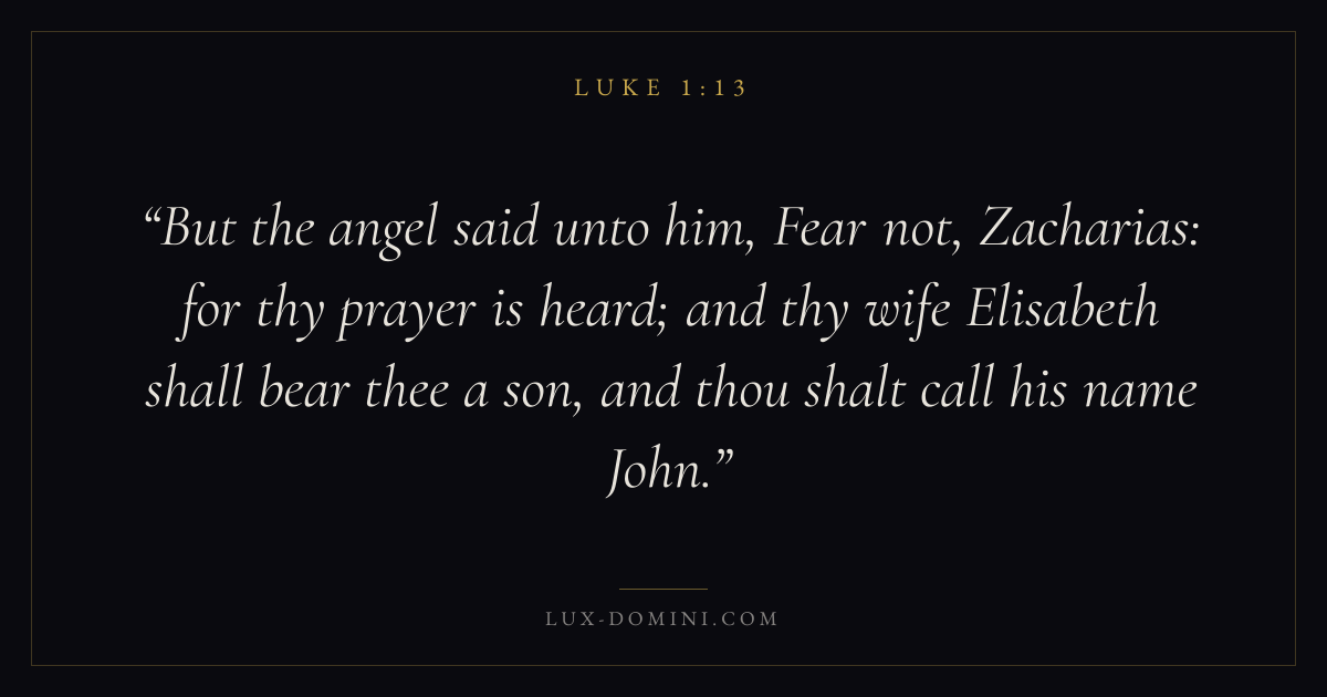 But the angel said unto him, Fear not, Zacharias: for thy prayer is heard; and thy wife Elisabeth shall bear thee a son, and thou shalt call his name John.