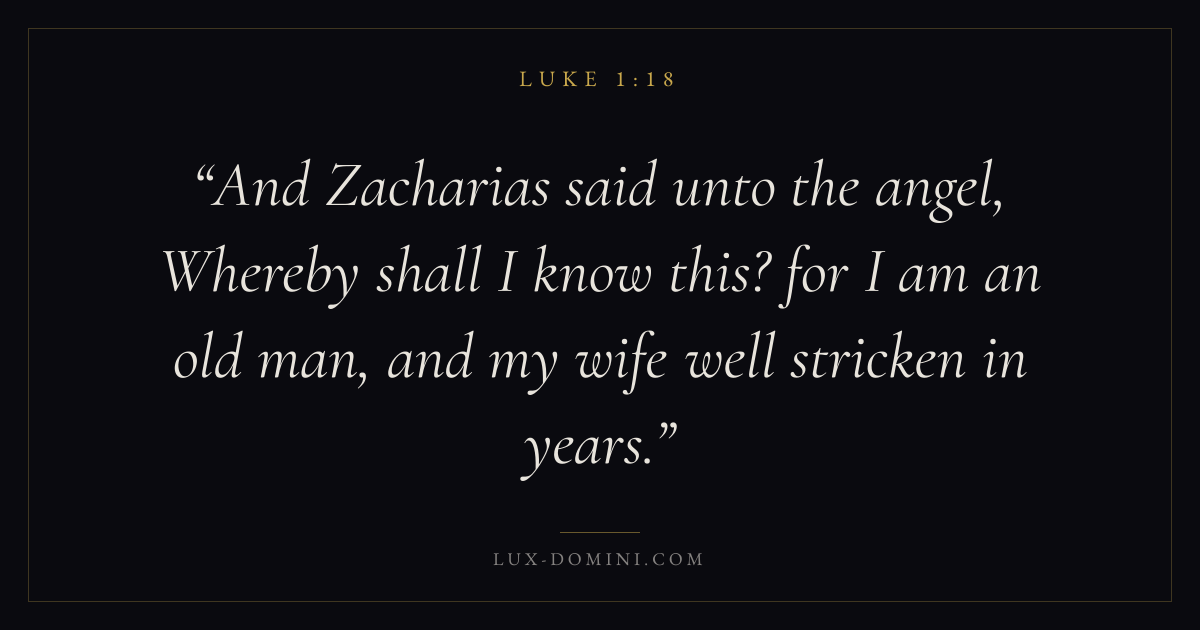 And Zacharias said unto the angel, Whereby shall I know this? for I am an old man, and my wife well stricken in years.