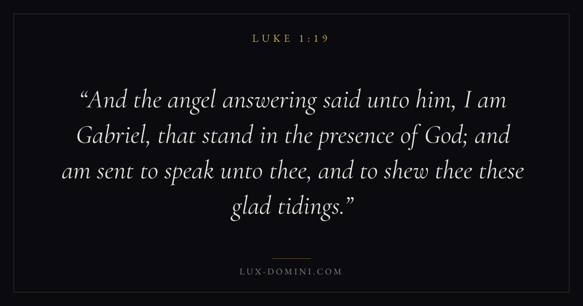 And the angel answering said unto him, I am Gabriel, that stand in the presence of God; and am sent to speak unto thee, and to shew thee these glad tidings.