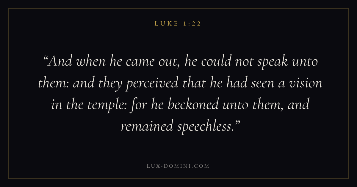 And when he came out, he could not speak unto them: and they perceived that he had seen a vision in the temple: for he beckoned unto them, and remained speechless.