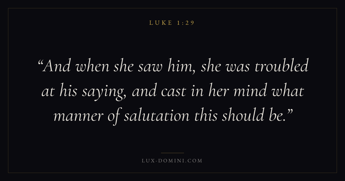 And when she saw him, she was troubled at his saying, and cast in her mind what manner of salutation this should be.