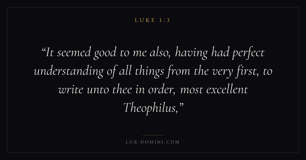 It seemed good to me also, having had perfect understanding of all things from the very first, to write unto thee in order, most excellent Theophilus,