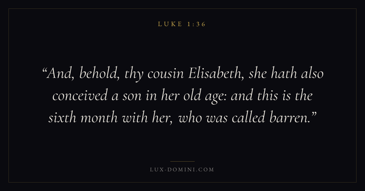 And, behold, thy cousin Elisabeth, she hath also conceived a son in her old age: and this is the sixth month with her, who was called barren.