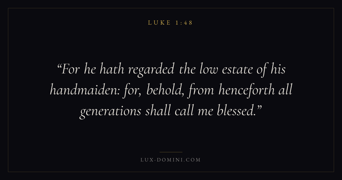 For he hath regarded the low estate of his handmaiden: for, behold, from henceforth all generations shall call me blessed.