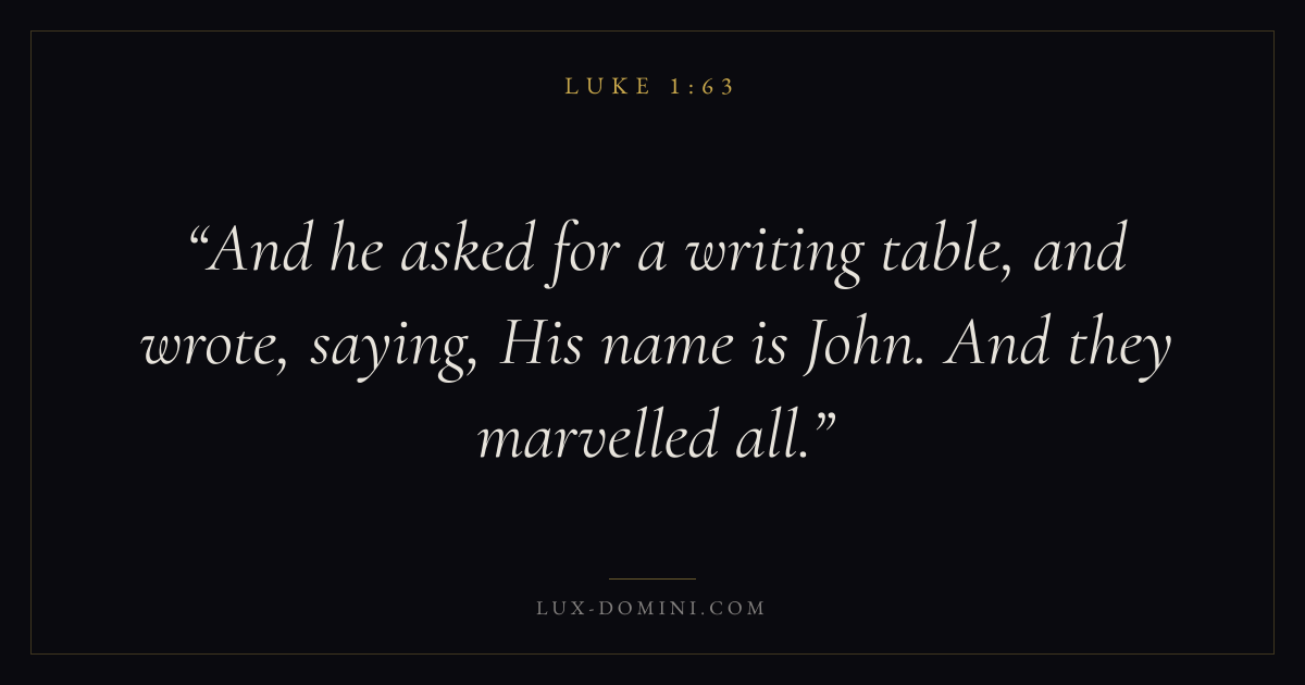 And he asked for a writing table, and wrote, saying, His name is John. And they marvelled all.