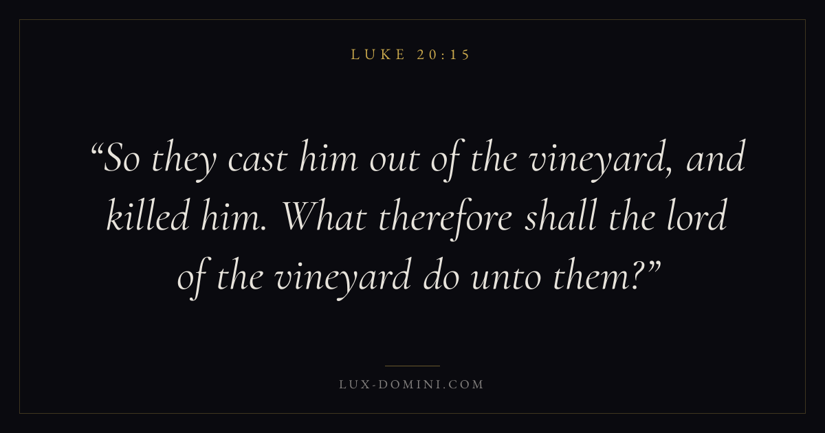 So they cast him out of the vineyard, and killed him. What therefore shall the lord of the vineyard do unto them?