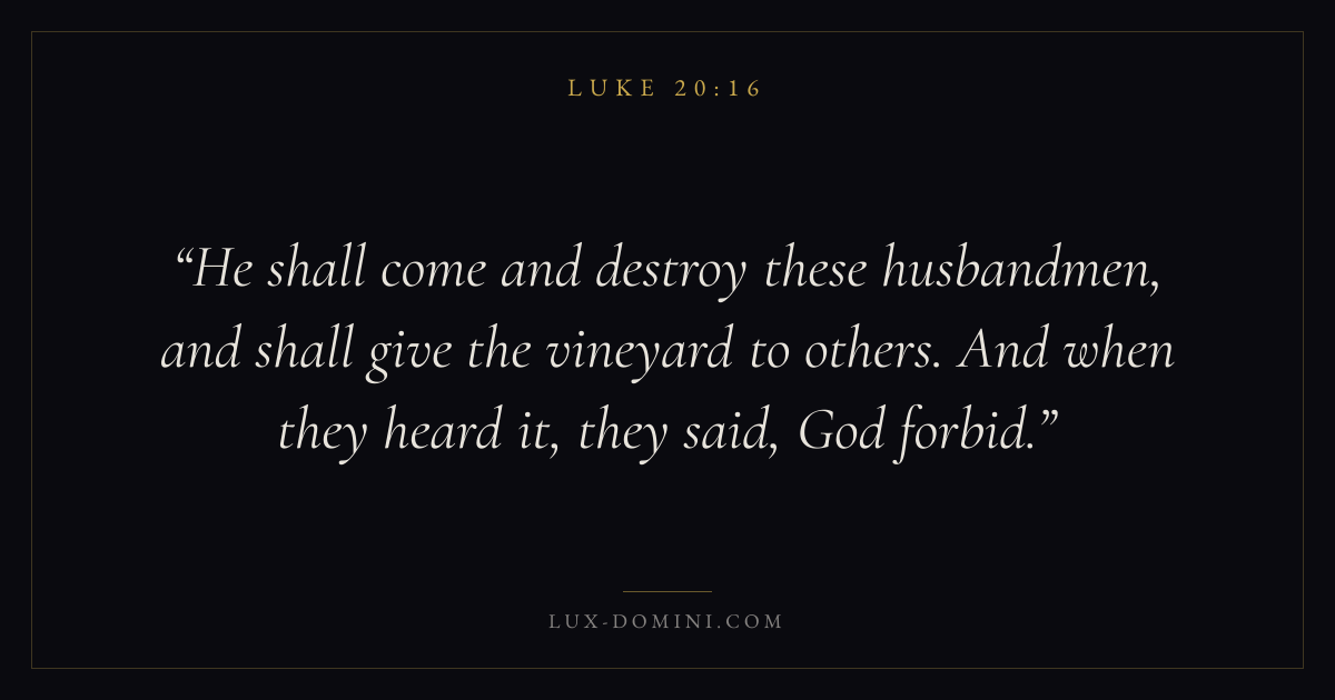 He shall come and destroy these husbandmen, and shall give the vineyard to others. And when they heard it, they said, God forbid.